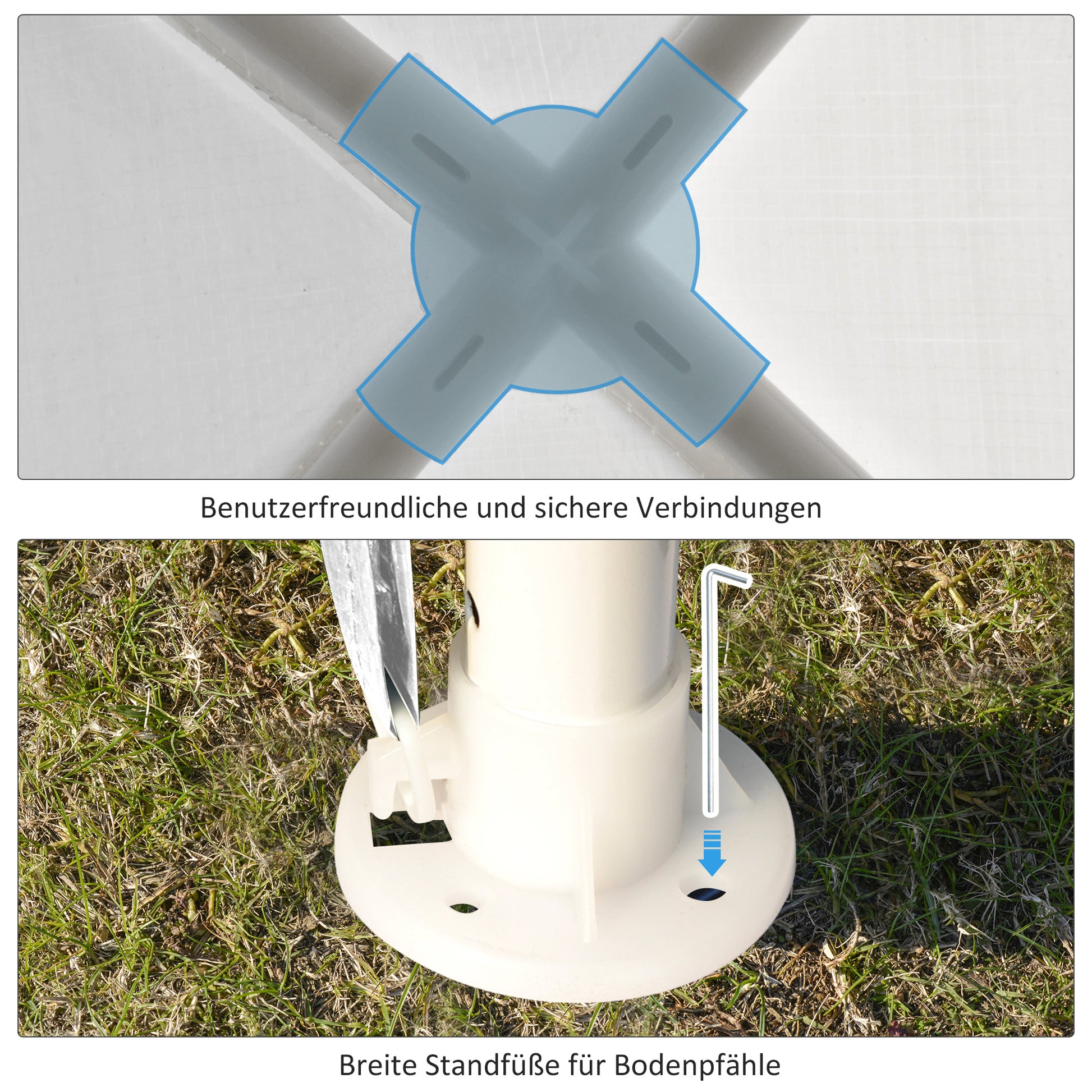 - ✔ 8 Heringe zur sicheren Verankerung im Boden und 4 Befestigungsseile sorgen für zusätzliche Stabilität, auch bei windigem Wetter