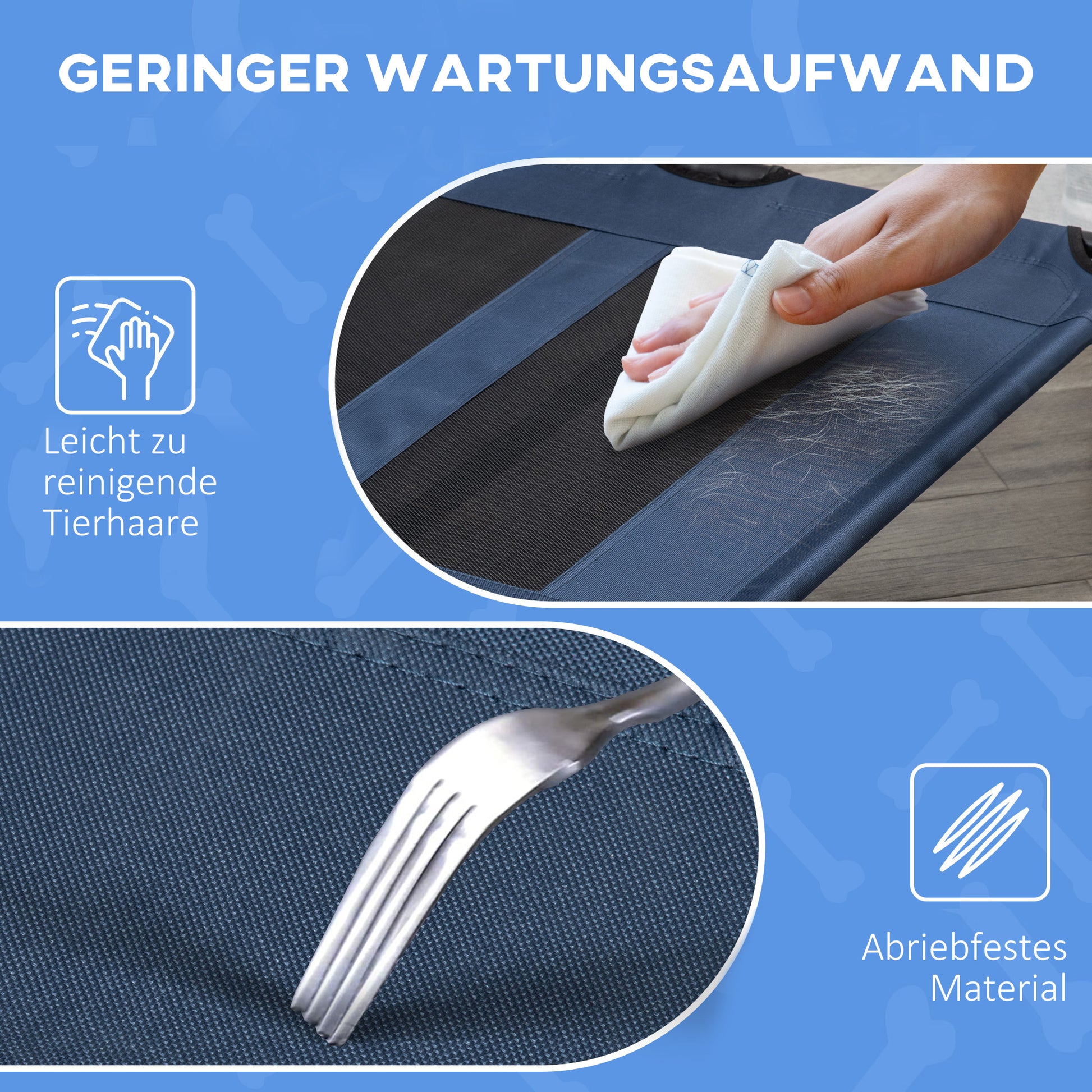 PawHut Hundebett, faltbar, Outdoor-Hundebett, erhöhter Stand, 122 cm x 92 cm x 23 cm, Blau + Schwarz