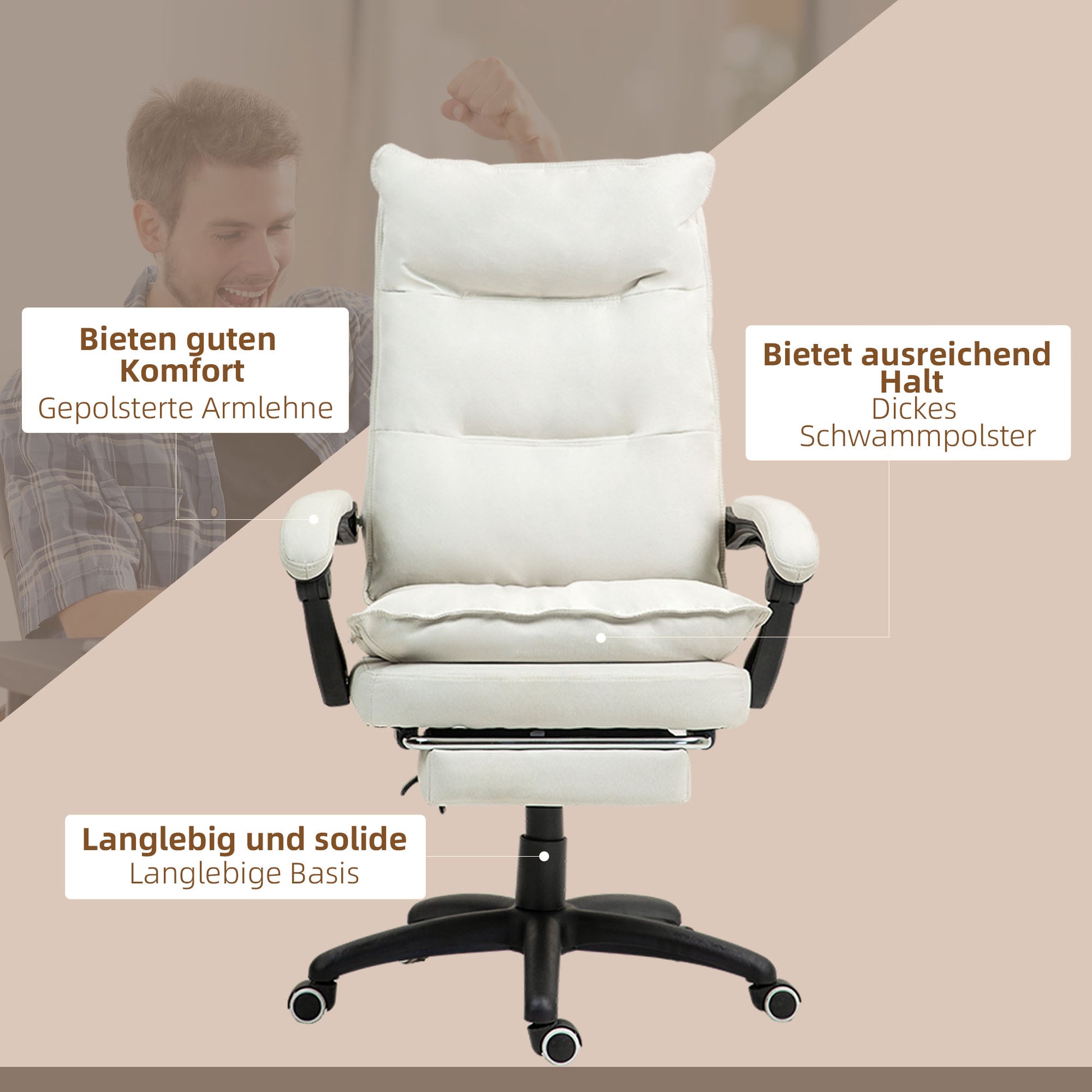 Vinsetto Massage-Bürostuhl, Schreibtischsessel mit Massagefunktion, höhenverstellbarer, ergonomischer Drehstuhl, Nylon, Cremeweiß