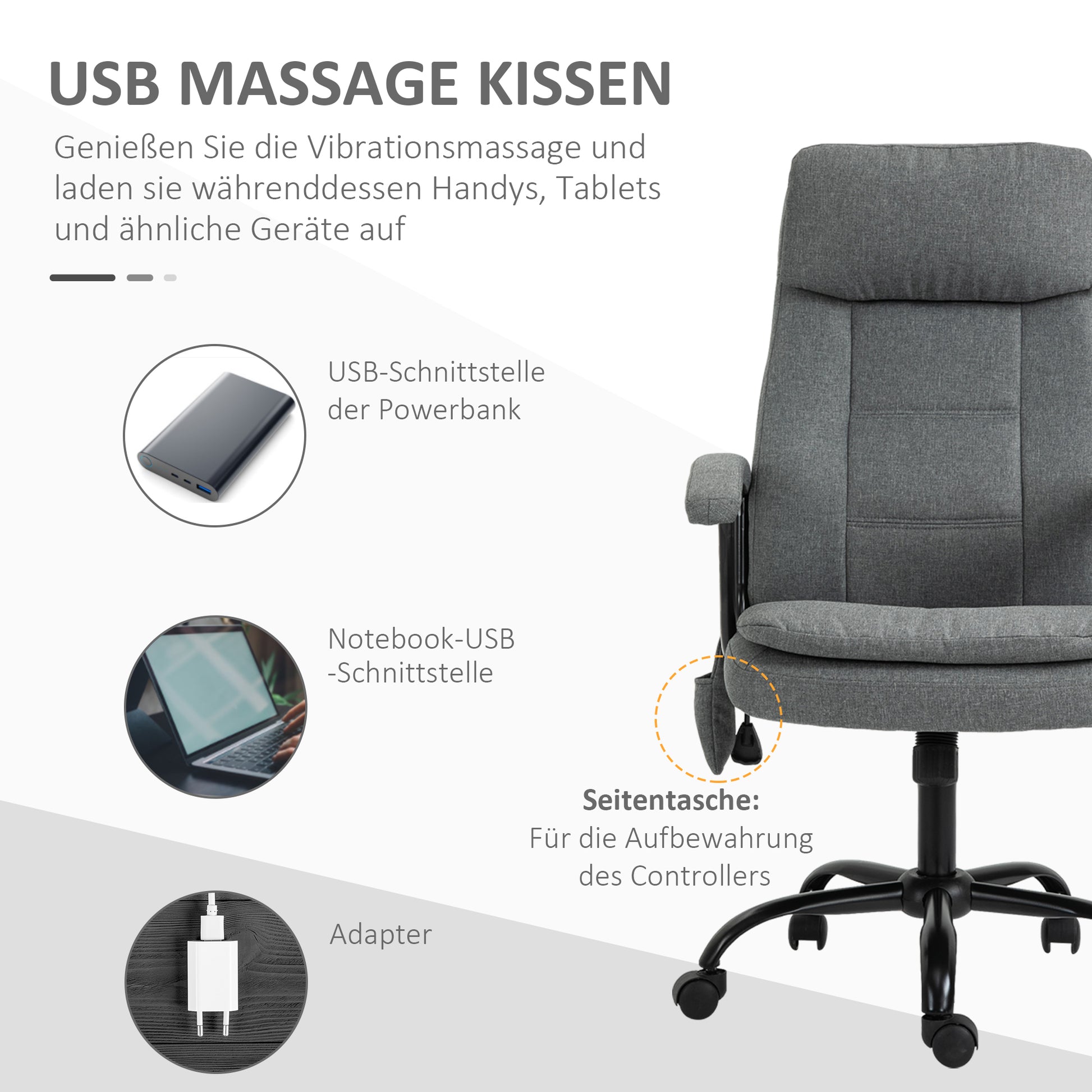 Vinsetto Bürostuhl Massage höhenverstellbarer Chefsessel Gamingstuhl mit Massagefunktion, ergonomischer Drehstuhl Massage Sessel Lendenwirbelsäulenmassage Leinen-Gefühl Grau 63 x 70 x 112-121 cm