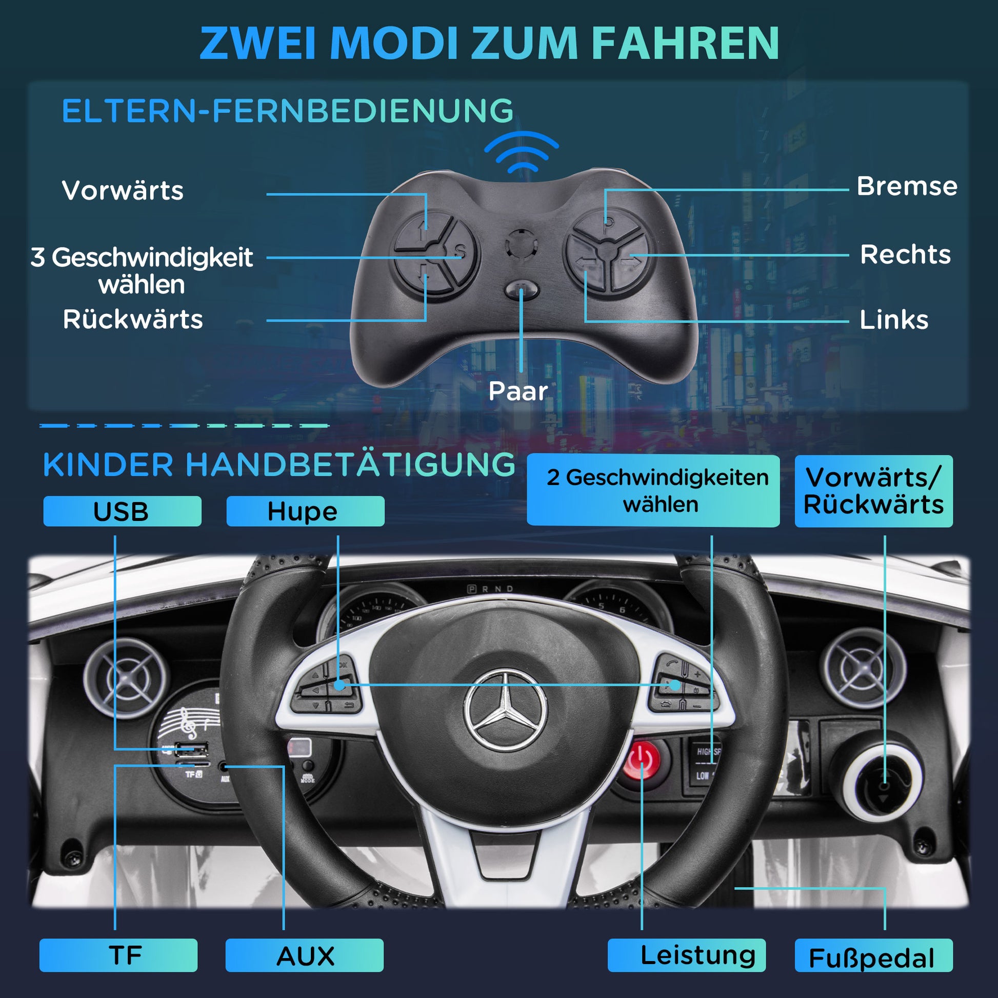 AIYAPLAY Kinder-Elektroauto, mit LED-Scheinwerfern, Sicherheitsgurt, Hupe, Musik, 3 bis 5 km/h, weiß, 107 x 62,5 x 44cm