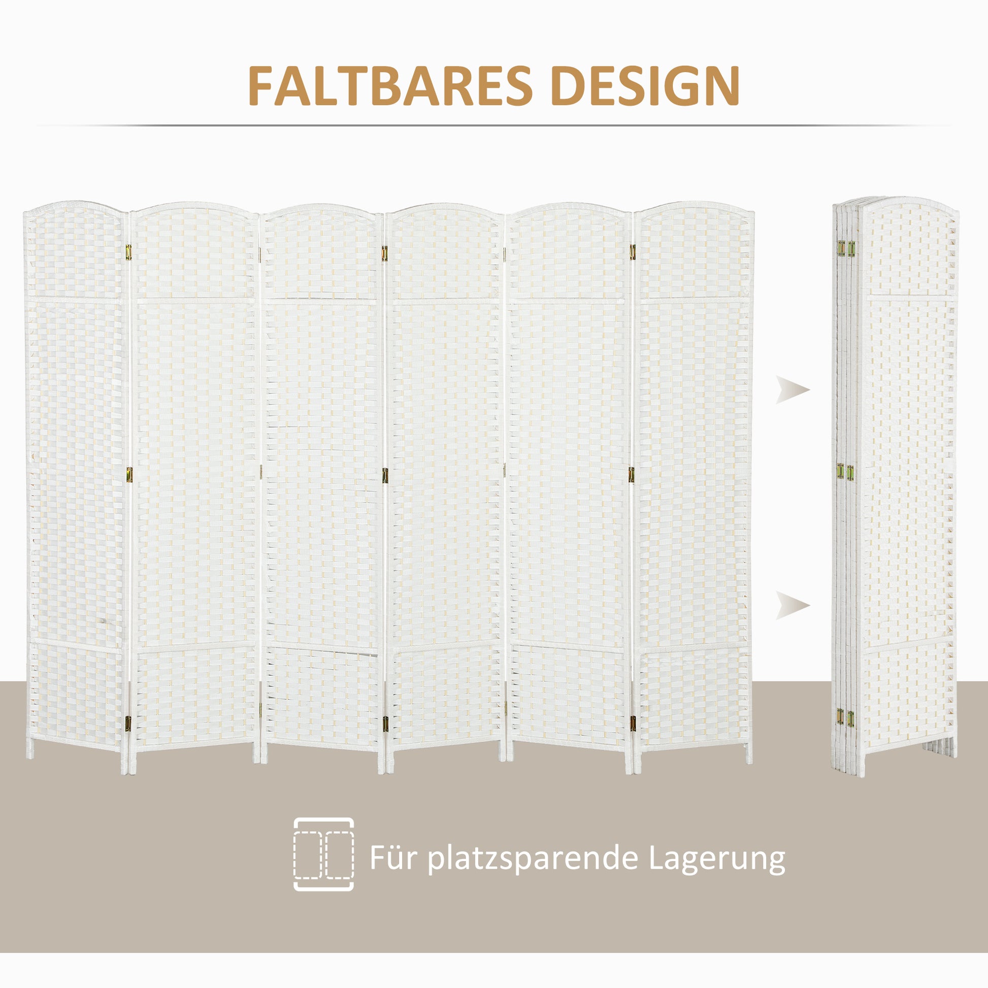 HOMCOM 6-teiliger Raumtrenner, Faltbarer Sichtschutz, Sichtschutzwand für Wohnzimmer, Schlafzimmer, Homeoffice, Weiß