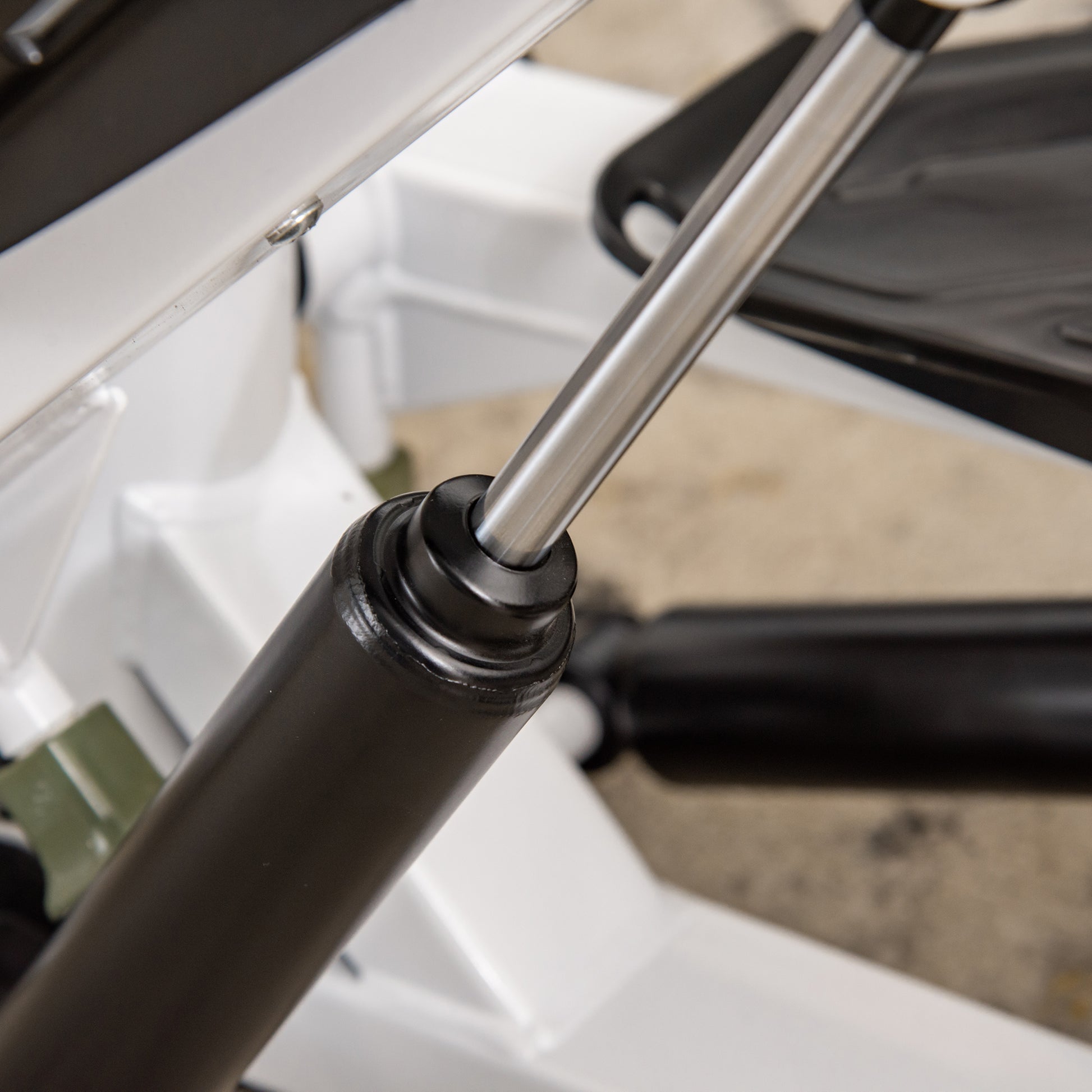 - ✔ Die beiden Hydraulikzylinder sorgen für einen gleichmäßigen Tritt und halten das Tempo hoch