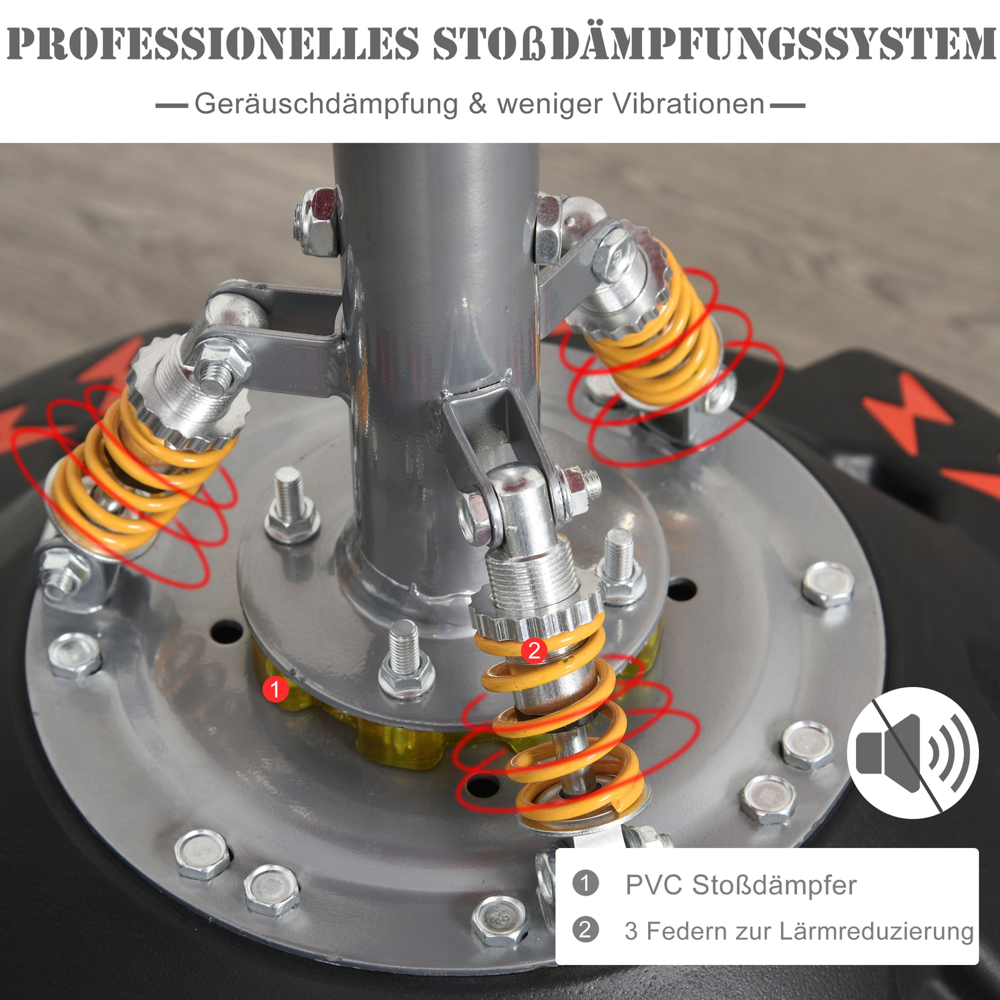 Dies ist ein professioneller freistehender Boxständer für Erwachsene, hergestellt von HOMCOM, mit hochwertigen Oberflächenmaterialien und Füllstoffen, er ist für langfristiges Training und Gebrauch geeignet und reduziert die Möglichkeit von Verletzungen. Die drei kräftigen Stoßdämpfungsfedern in der Mitte des Produkts können unnötige Vibrationen wirksam reduzieren, so dass der Hauptkörper des Produkts das physische Feedback besser simulieren und Ihnen ein professionelleres Training ermöglichen kann. Darüber hinaus befindet sich in der Mitte des Produkts ein großes chinesisches Schriftzeichen, das für chinesisches Kung Fu und Kraft steht und nicht nur modisch und energisch aussieht, sondern Sie auch dazu inspiriert, im täglichen Leben mehr zu trainieren.