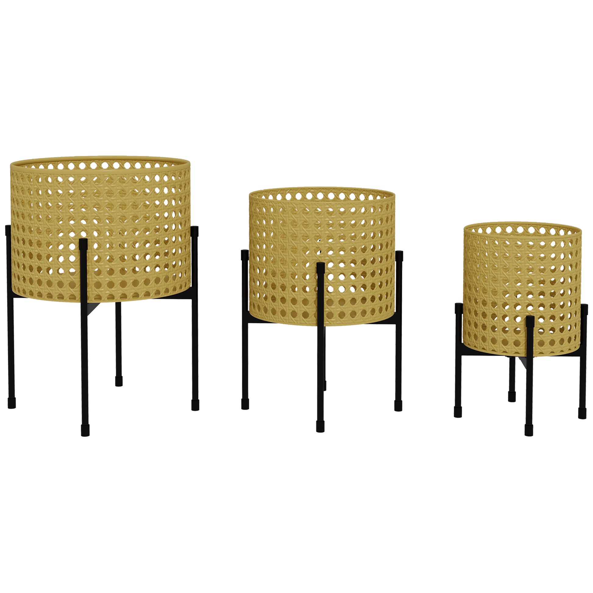 Outsunny Blumenständer, 3er-Set, rostfreies Metallgestell, In- und Outdoor, Schwarz/Gold