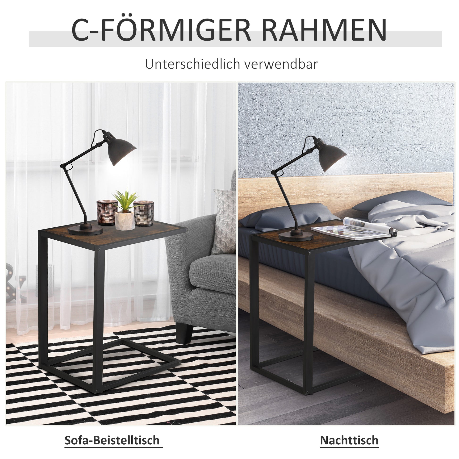HOMCOM Beistelltisch in C-Form Kaffeetisch Couchtisch Laptoptisch für Schlafzimmer und Wohnzimmer kleiner Bereich mit Metallgestell Industrie-Stil Metall MDF Rustikal-Braun 40,6 x 50,8 X 64,2 cm