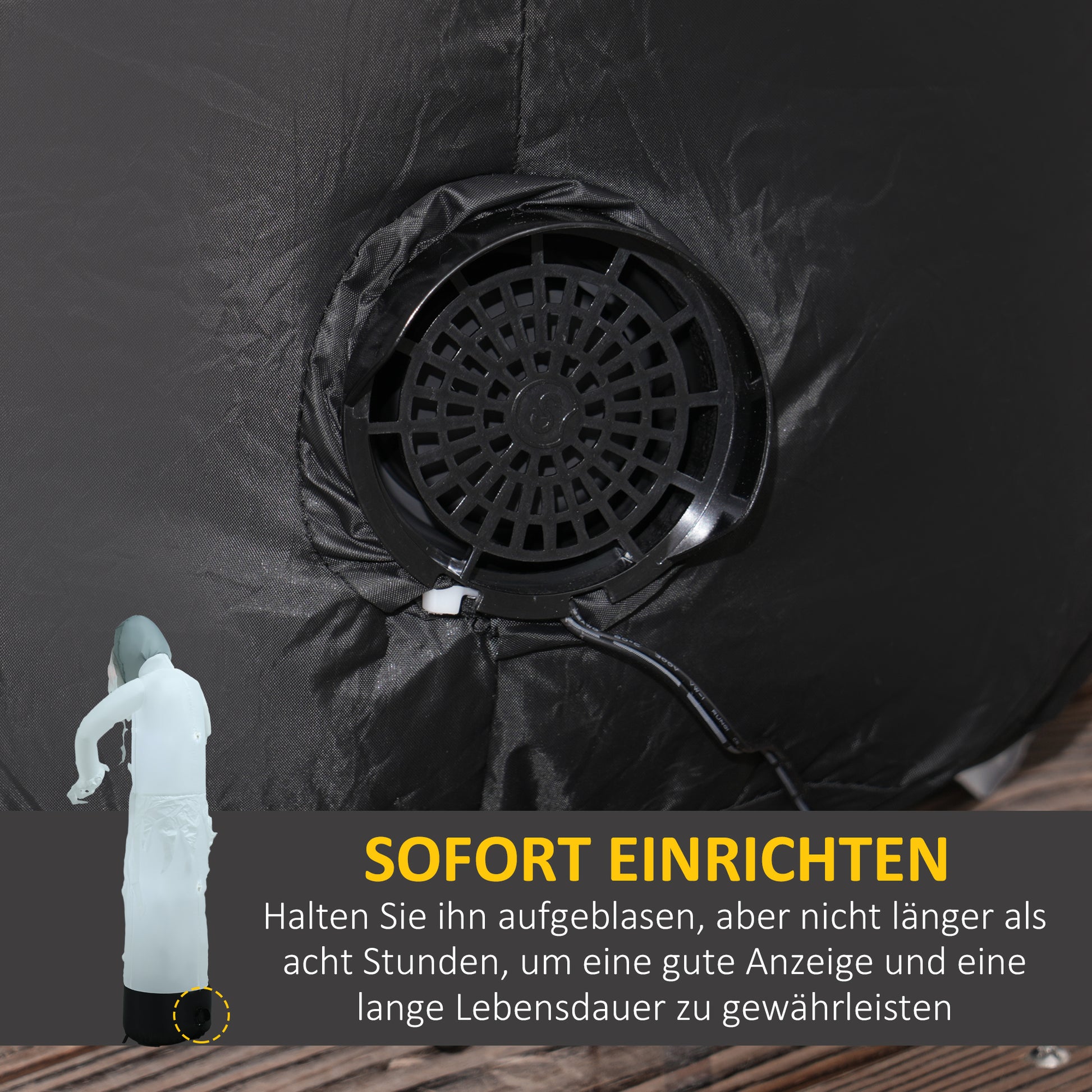 - ✔ Einfaches Aufblasen der Halloween Dekoration durch Verbinden des Netzkabels und schnelles Luftablassen durch Trennen vom Stromnetz