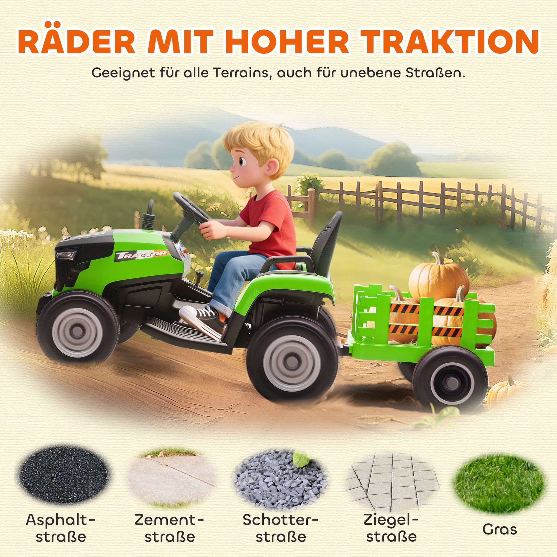 AIYAPLAY Elektrischer Kindertraktor, Aufsitz-Traktor mit Fernbedienung, Soft-Start, für Kinder im Alter von 3-8 Jahren, Grün