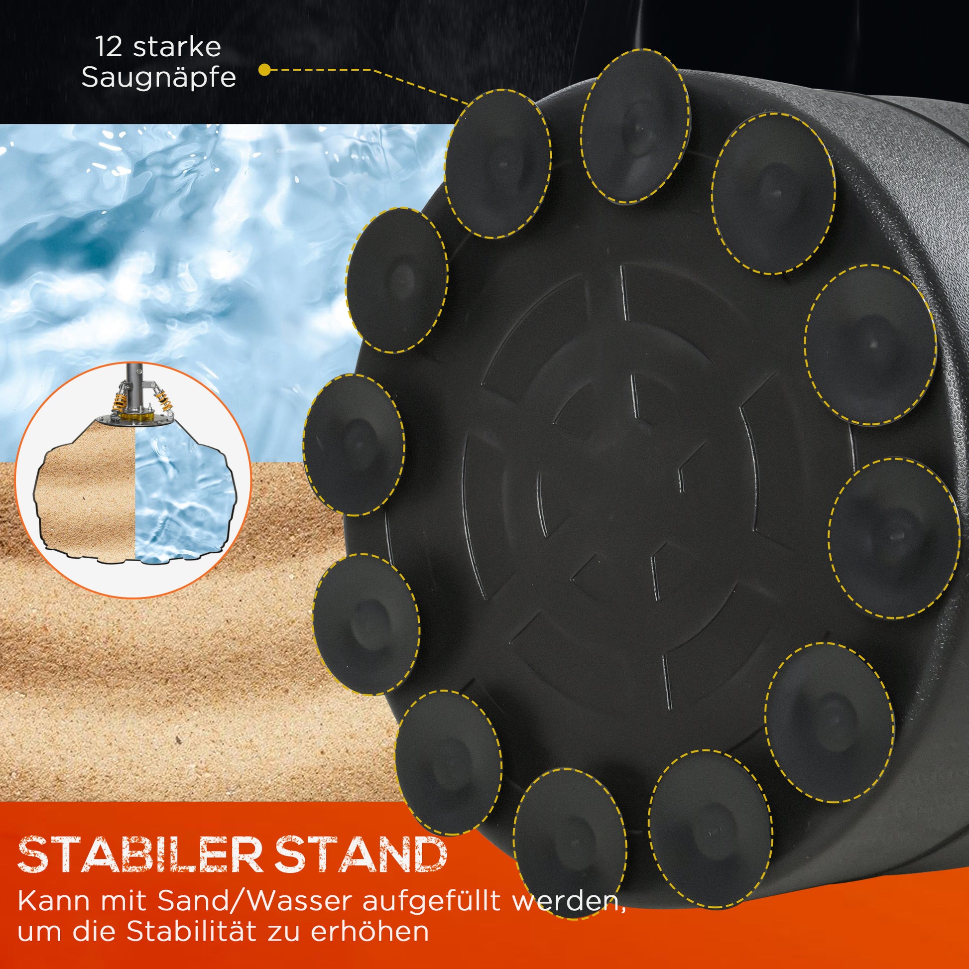 • ✔ Die robuste Basis kann mit Wasser oder Sand gefüllt werden, um die Stabilität zu erhöhen