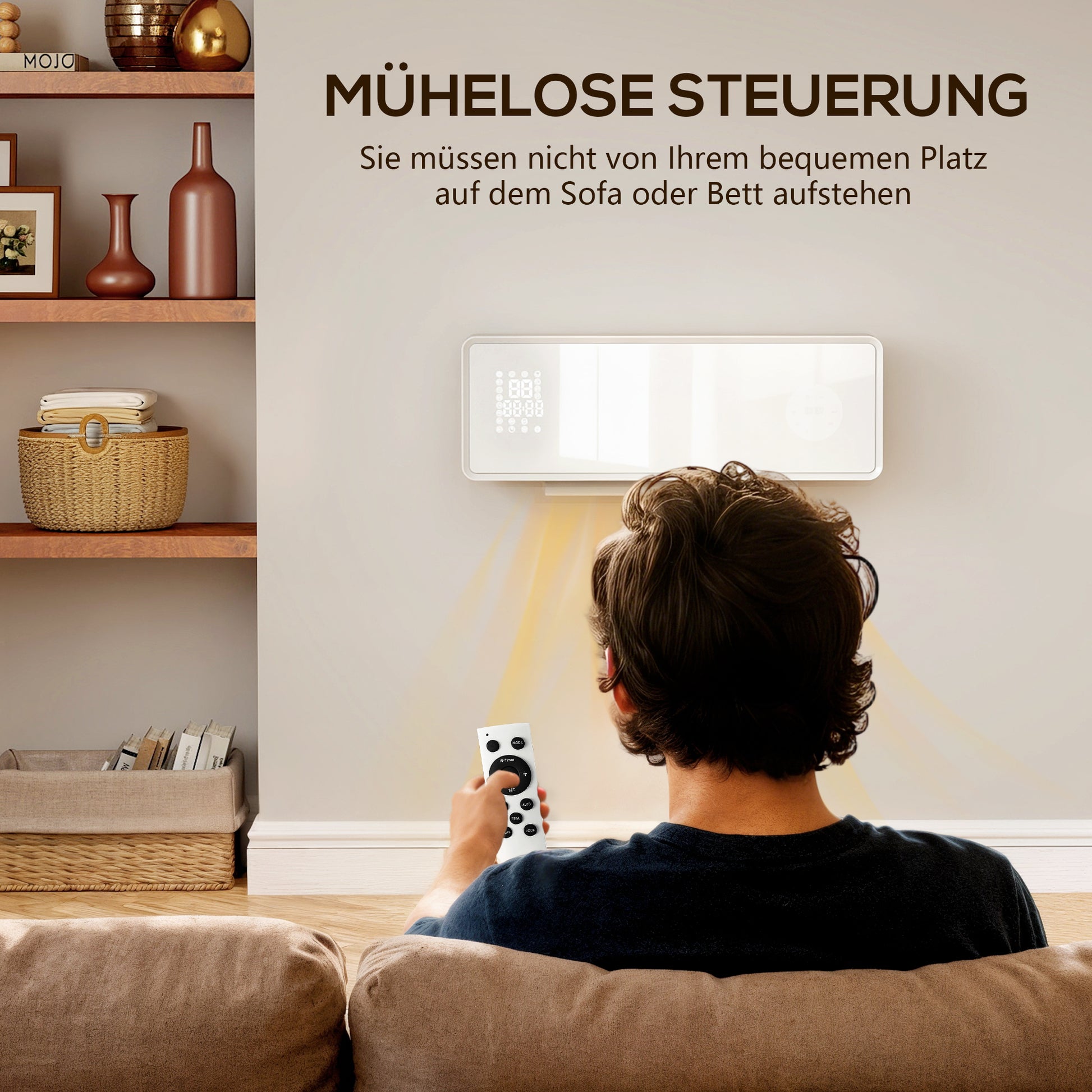 - ✔ Drei Modi (hohe Wärme/niedrige Wärme/Ventilator) und ein Thermostat (10-49°C) des Wandheizlüfters für präzise Temperatursteuerung