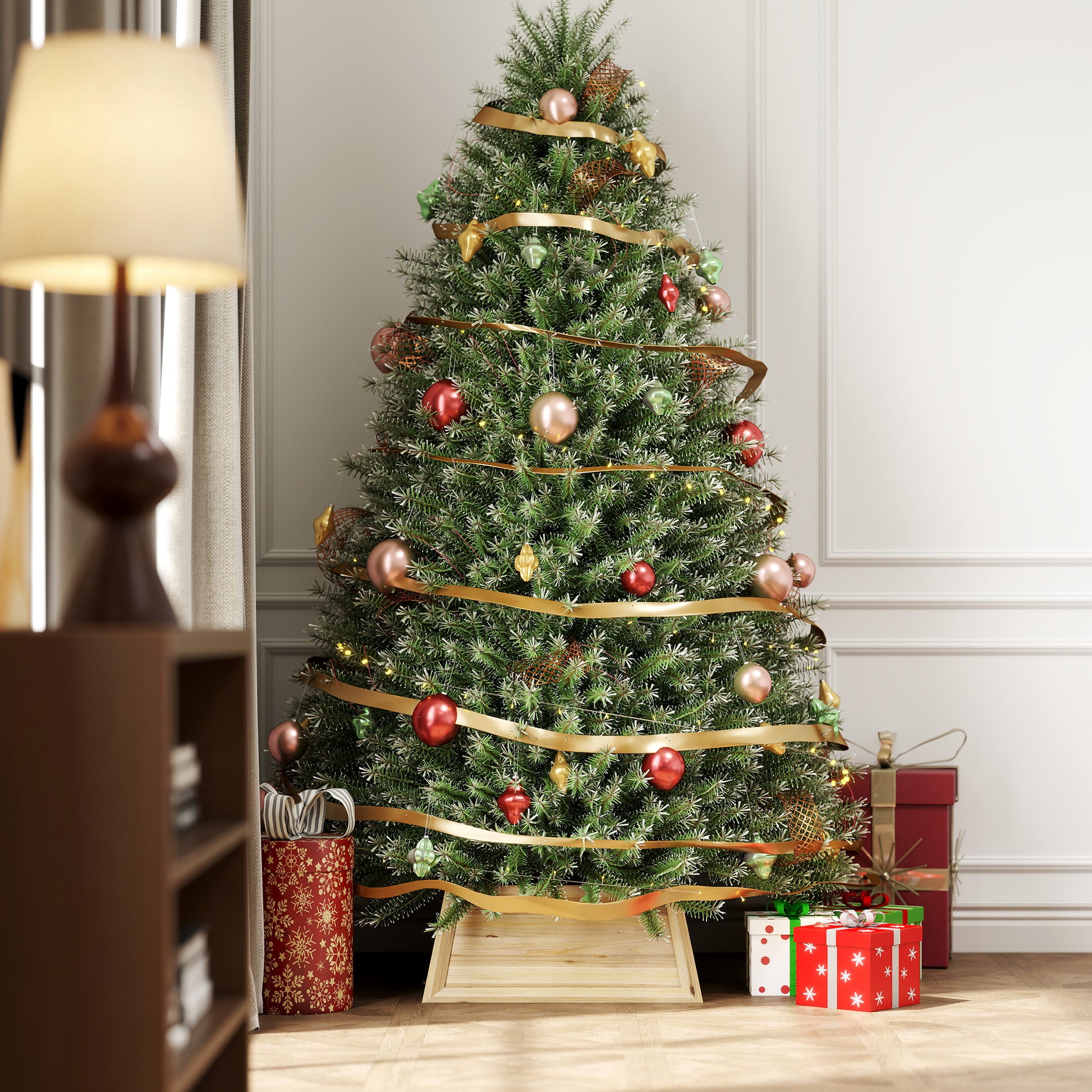 HOMCOM Weihnachtsbaumrock 65 x 65 cm Weihnachtsbaum Kragen aus Tannenholz Naturholz