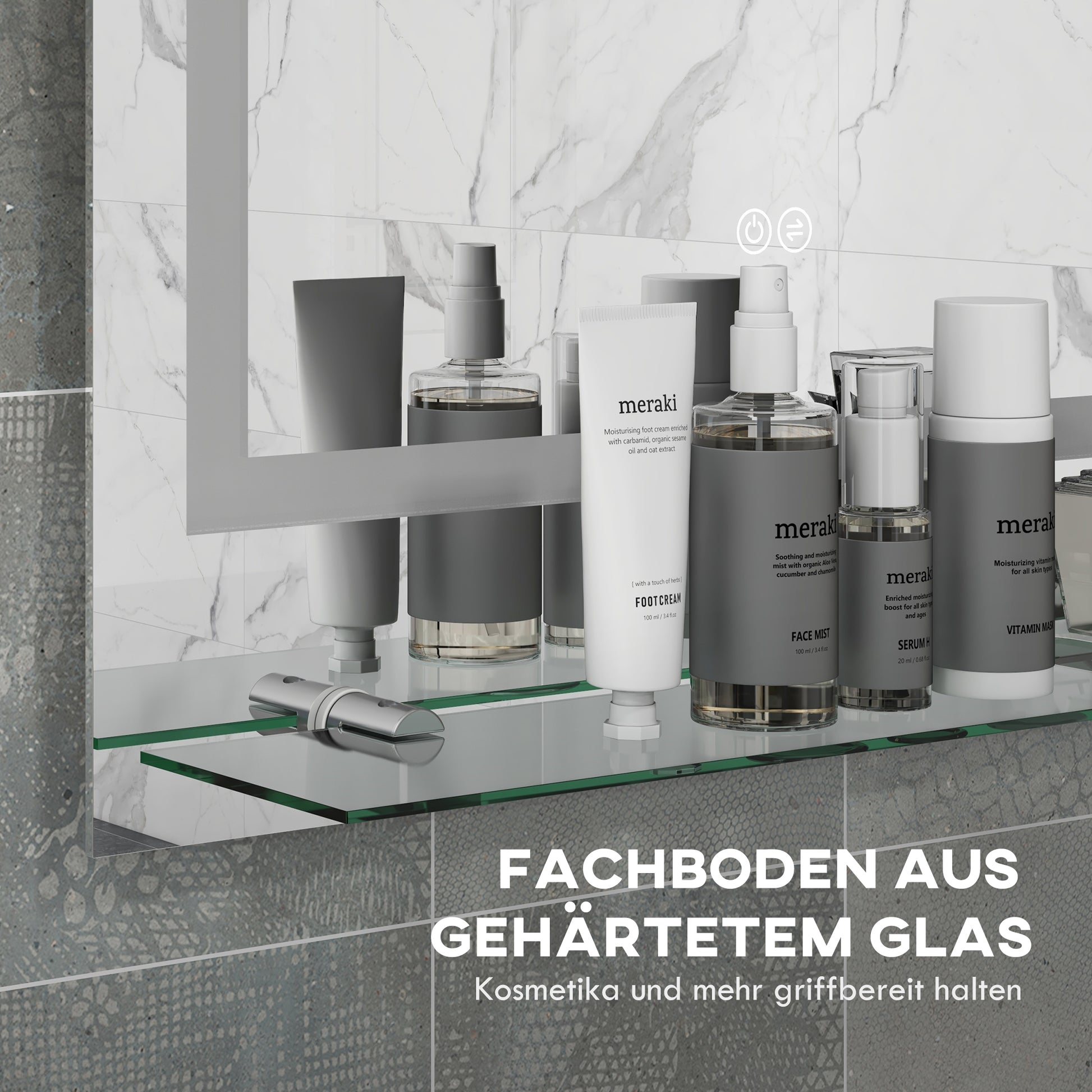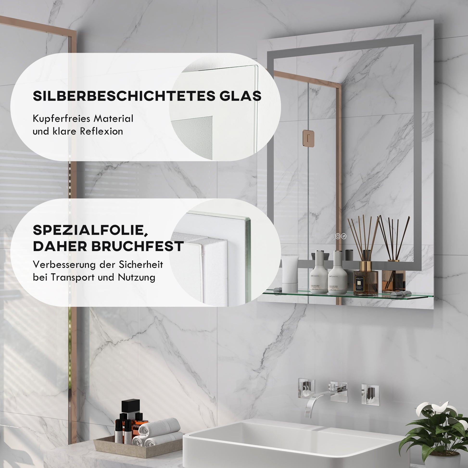 - ✔ Entnebelungsfunktion des Wandspiegels mit Beleuchtung hält das Glas in dampfenden Umgebungen klar