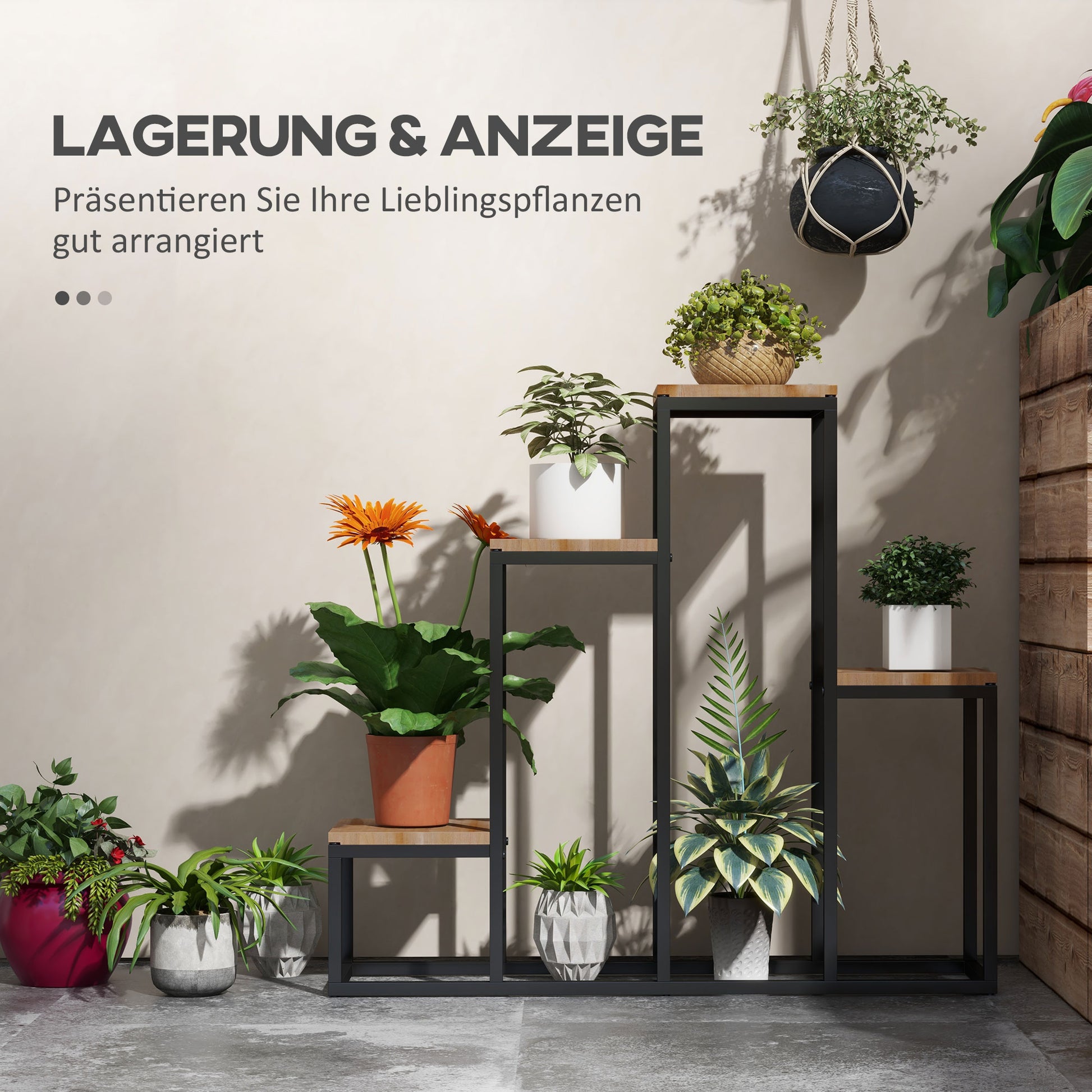 - ✔ Vierstufiges Pflanzenregal für stilvolle Präsentation