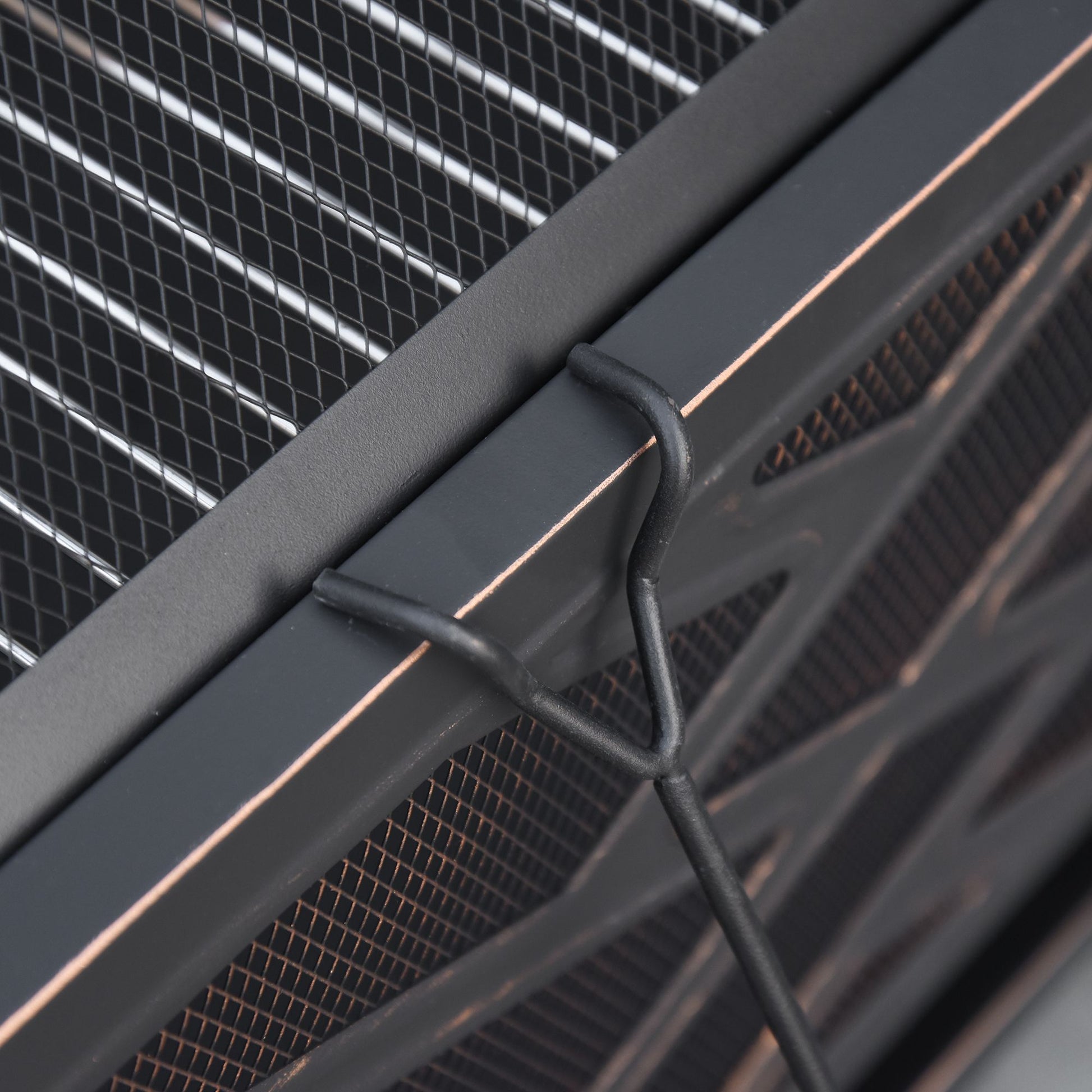 Outsunny Feuerschale mit Funkenschutz, Grillrost, Schürhaken, quadratisch, Stahlgehäuse, schwarz, 66 x 66 cm