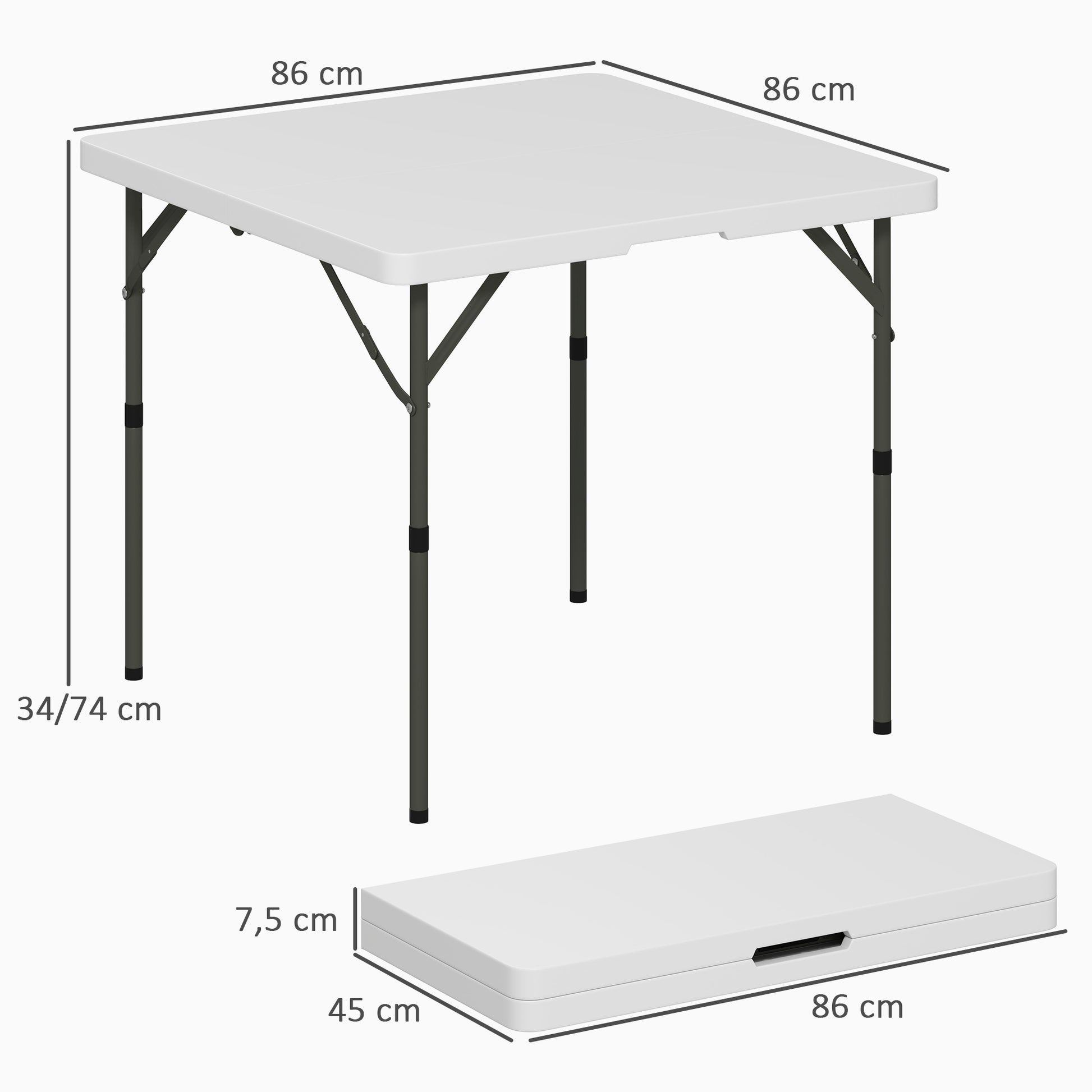 Der praktische Outsunny Picknicktisch lässt sich leicht transportieren und verstauen. Mit einer stabilen Kunststoff-Tischplatte und einem Metallgestell ausgestattet, bietet der in zwei Höhen einstellbare Tisch verlässliche Stabilität. Perfekt für Gartenpartys oder Camping geeignet, bereichert dieser kompakte, faltbare Picknicktisch jedes Outdoor-Erlebnis.