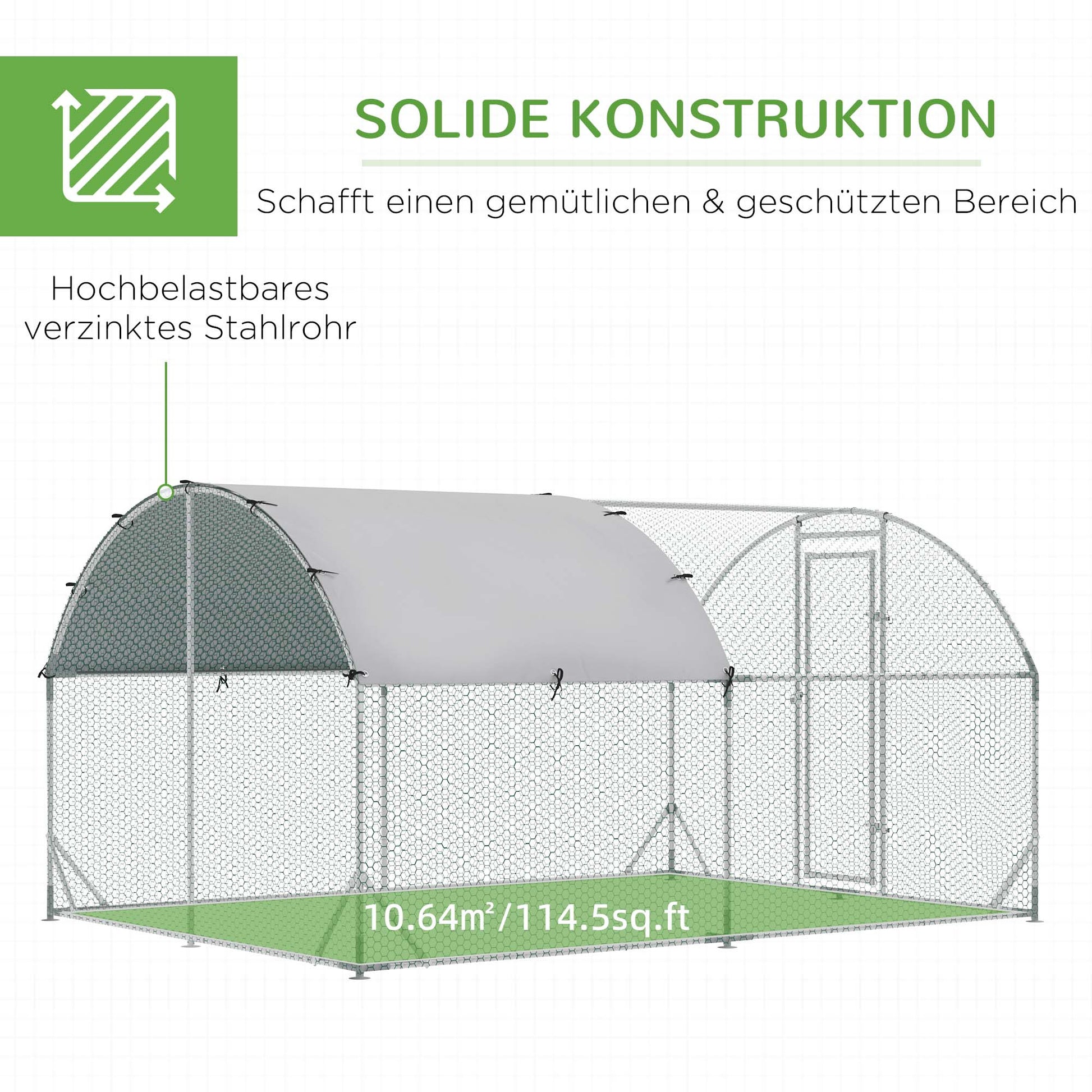PawHut Gehege für Kleintiere, Outdoor-Freilaufgehege für Hühner, Kaninchen, Enten, stabile Konstruktion, Stahl und Oxford-Stoff