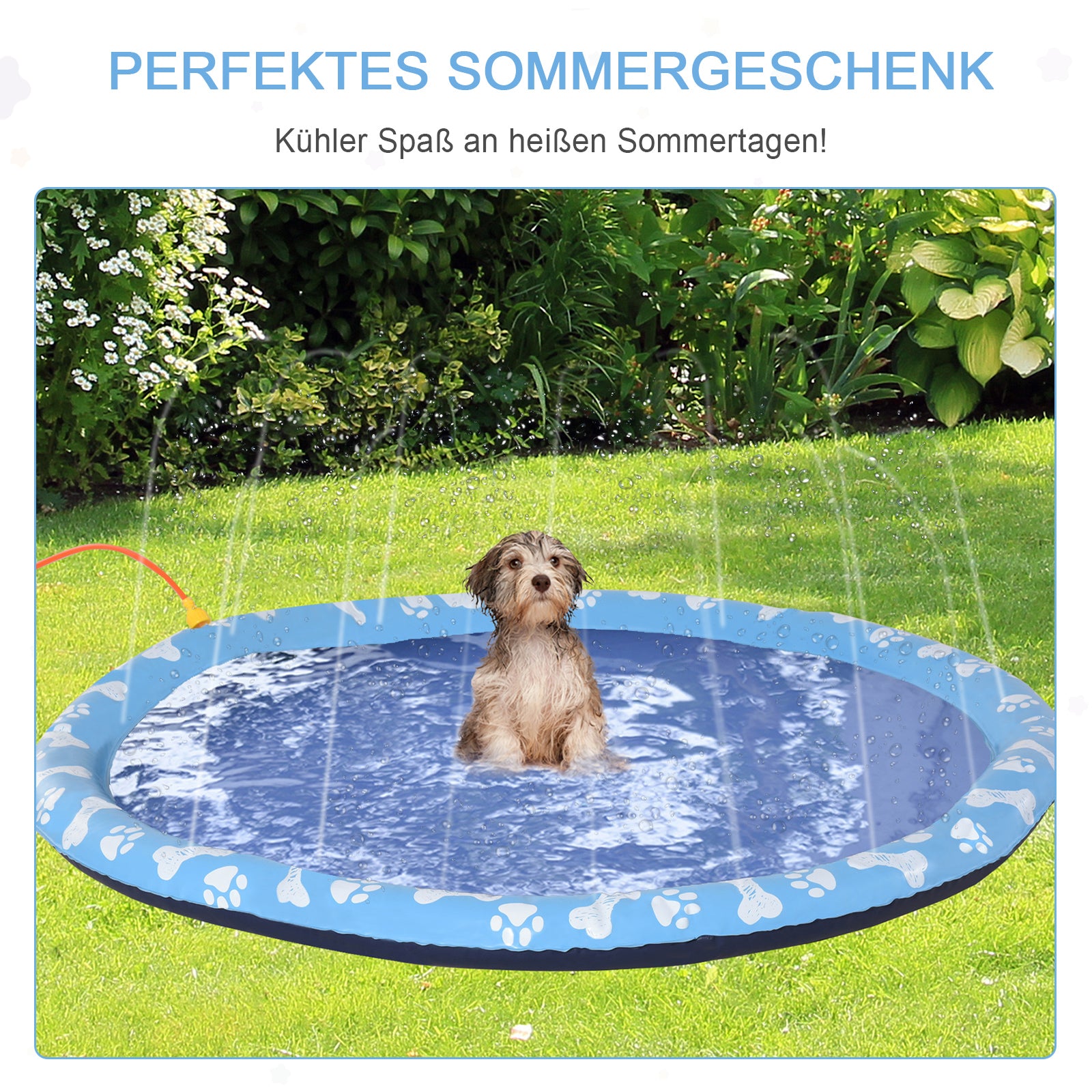PawHut Hundepool, Planschbecken, mit Wasserdüse, rund, rutschfest, blau, Ø150 cm