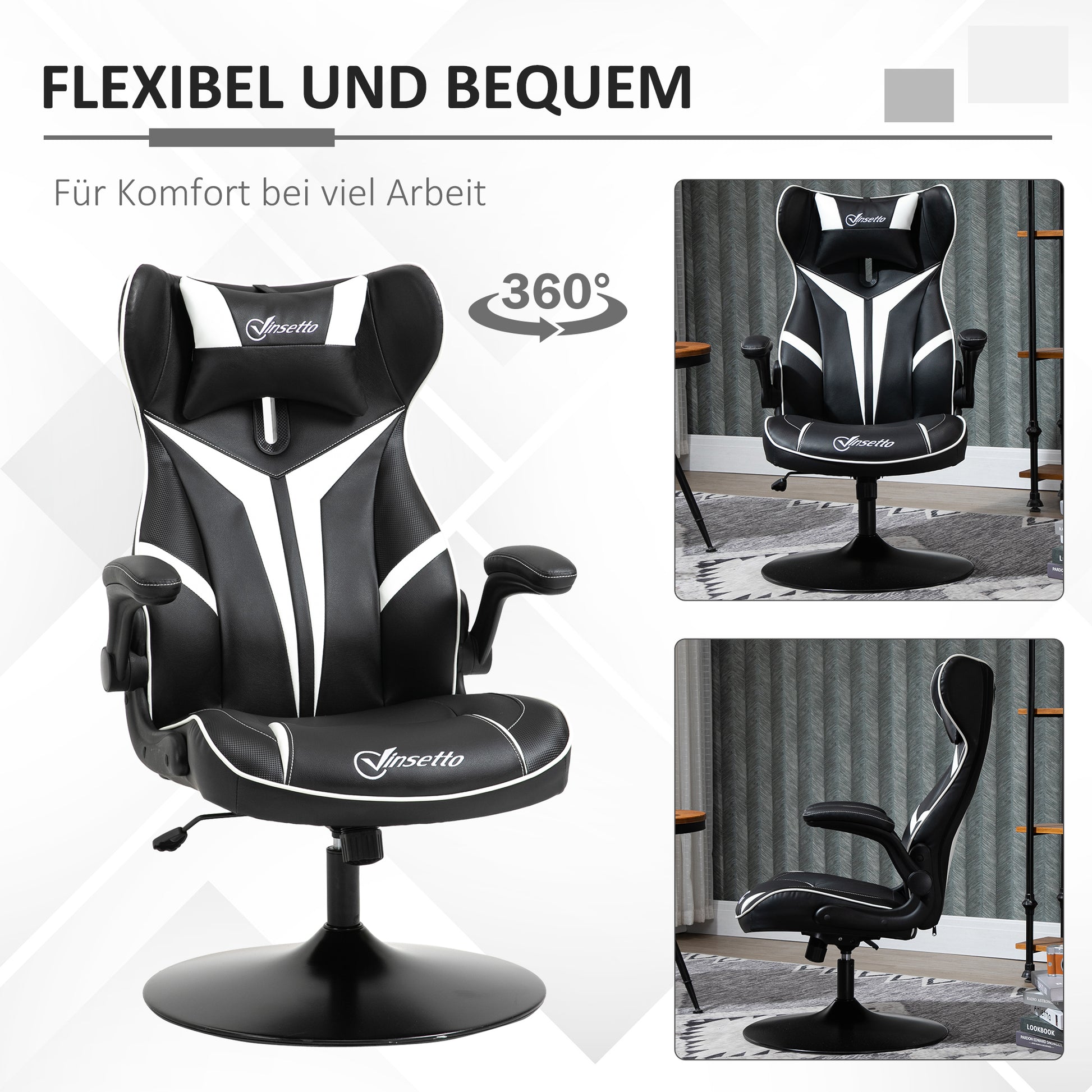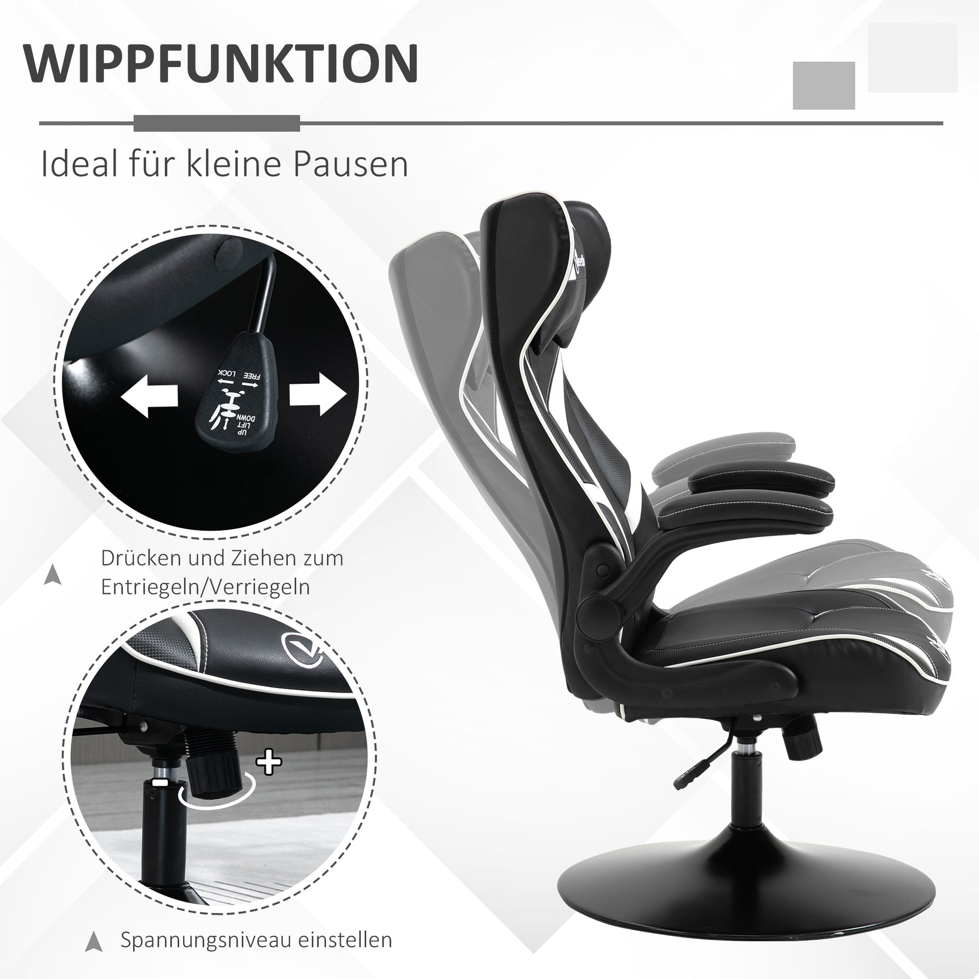 Vinsetto Gaming Stuhl ergonomischer Computerstuhl mit Wippfunktion Drehstuhl höhenverstellbar Stahl Schwarz+Weiß 67 x 70 x 106-112 cm