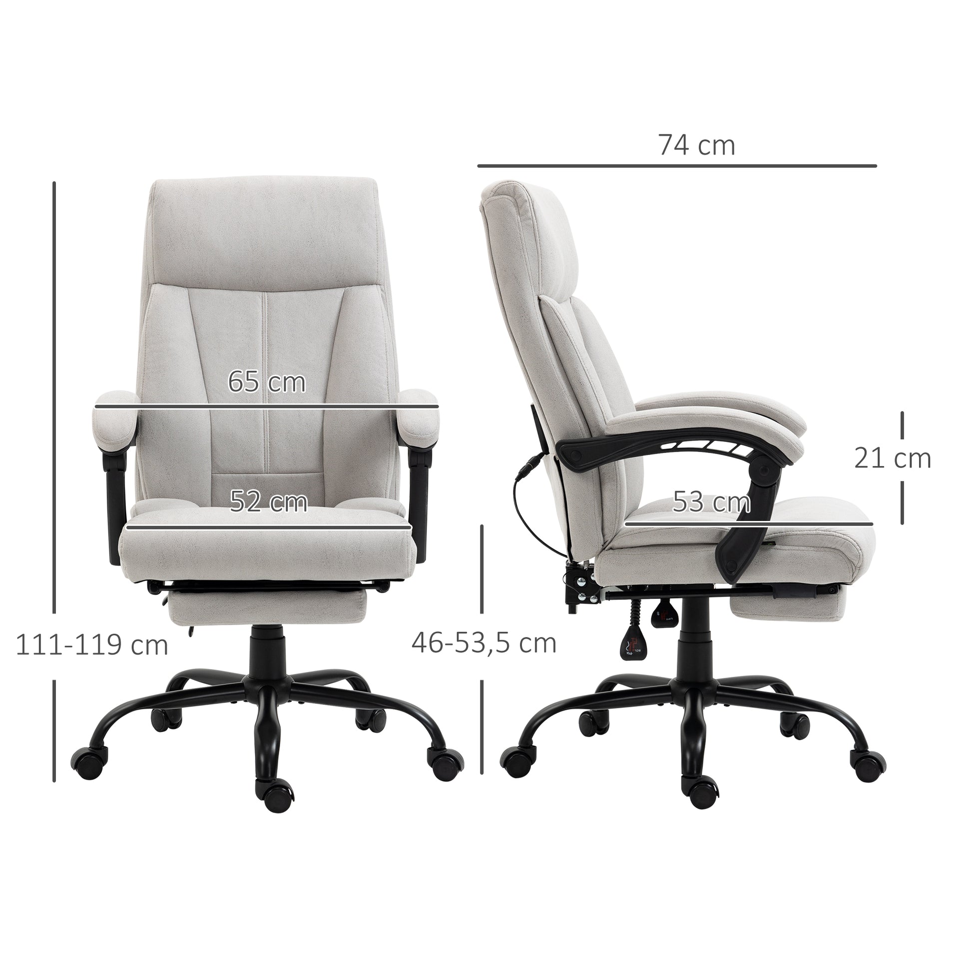 Dieser Bürostuhl von Vinsetto übertrifft alle Erwartungen, die man einen Massage-Bürostuhl hat! Mit seinen entspannenden Massagefunktionen können Sie entspannt arbeiten. Lehnen Sie sich zurück und lassen Sie ihn Ihnen helfen, die schmerzhaften Stressknoten in Ihrem Rücken zu lösen. Komfort und Funktionalität sind wichtig, für einen bequemen Computerstuhl, und Vinsetto weiß, wie man beides zusammenbringt.