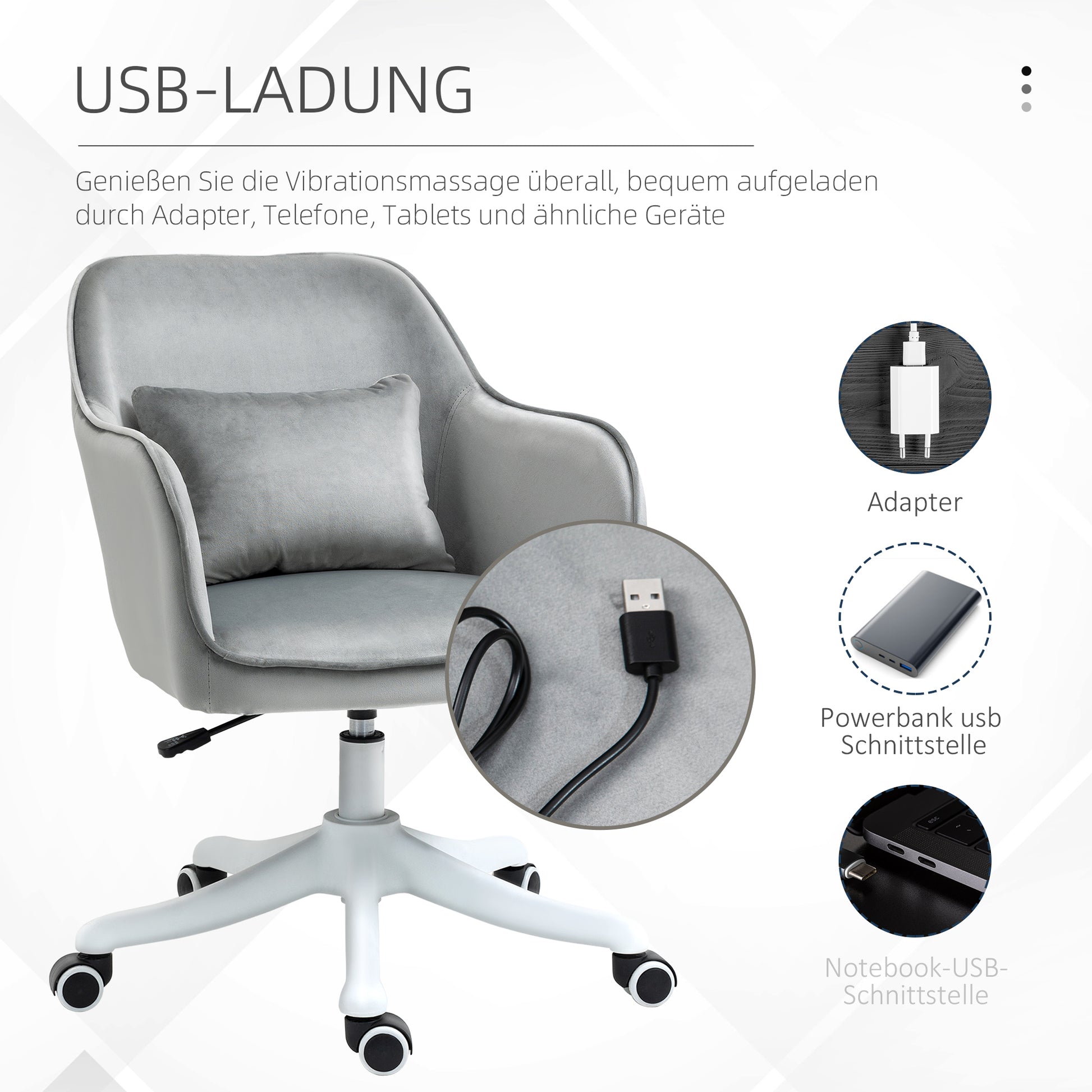 Vinsetto Massage Schreibtischstuhl 78-86 cm höhenverstellbarer Bürostuhll Drehstuhl Computerstuhl mit USB-Schrittstelle Arbeitsstuhl mit Vibrationsfunktion Lendenkissen Massagefunktion Grau
