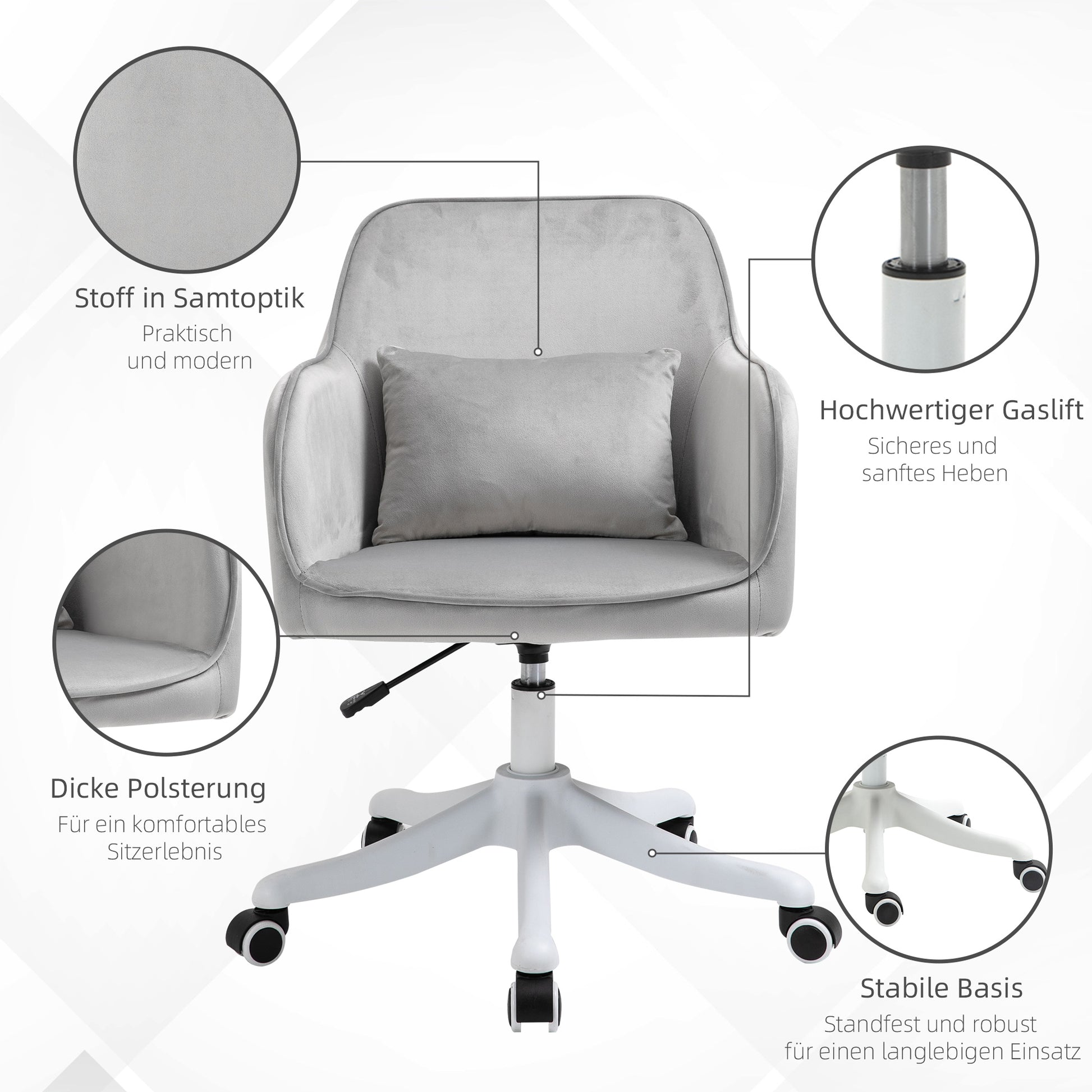 Der zeitgemäße Massage-Bürostuhl von Vinsetto bietet nicht nur ein ansprechendes Design, sondern ist auch mit einer praktischen Massagefunktion ausgestattet. Das integrierte Lendenkissen verfügt über eine Vibrationsfunktion, die Ihren Rücken nach langen Arbeitssitzungen oder während kurzer Pausen verwöhnt. Der Bezug aus weichem und atmungsaktivem Vlies sorgt für zusätzlichen Komfort. Dieser elegante Massagebürostuhl von Vinsetto ist in den angesagten Farben Grau, Türkis und Rosa erhältlich.