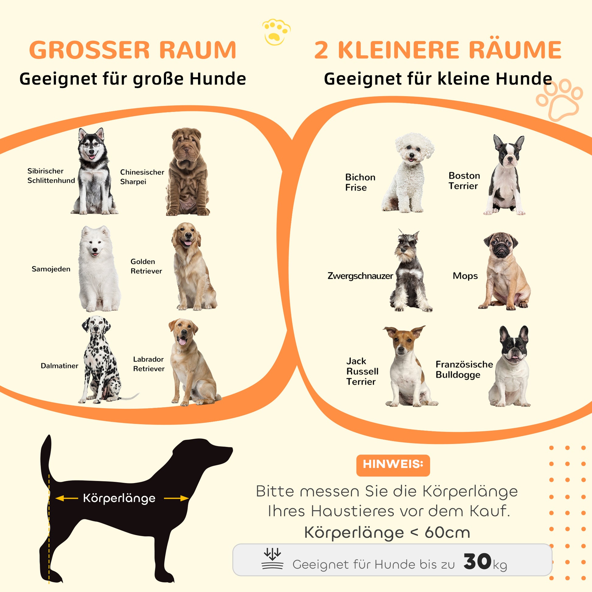 - ✔ Zweiraum-Option für Hunde bis 35 cm und 8 kg