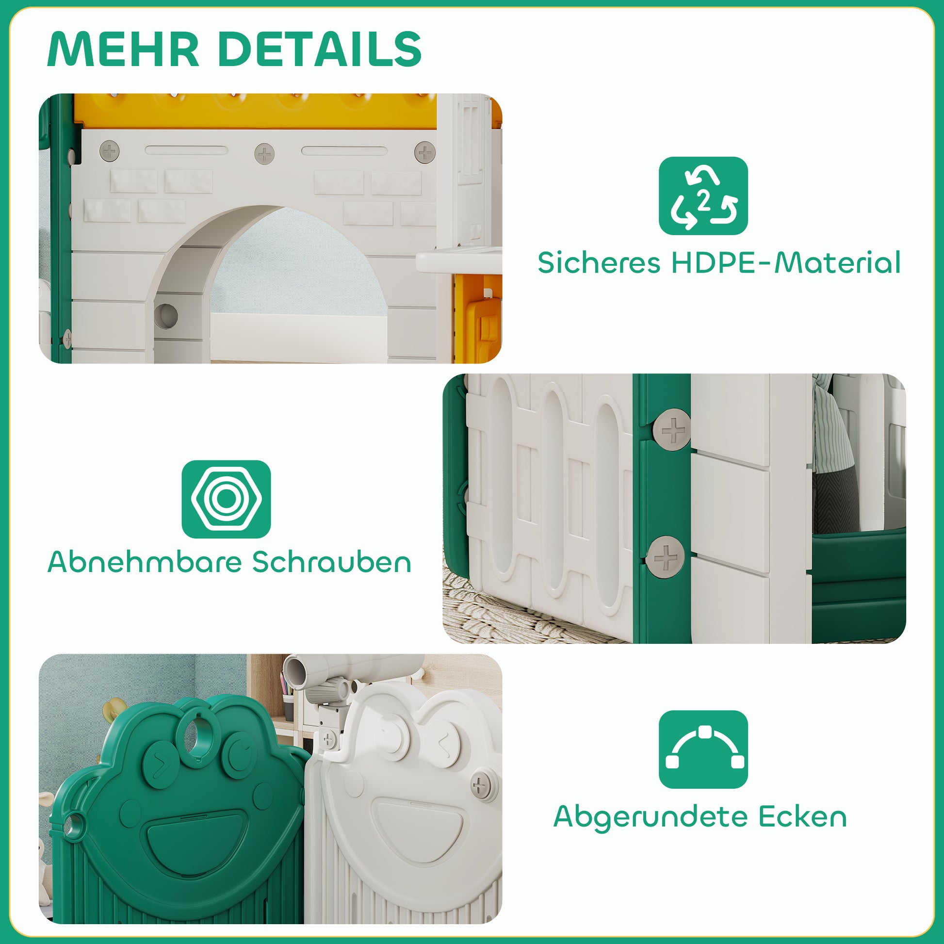- ✔ Ein geräumiges Spielhaus und eine weiße Tafel fördern Kreativität und Spiel