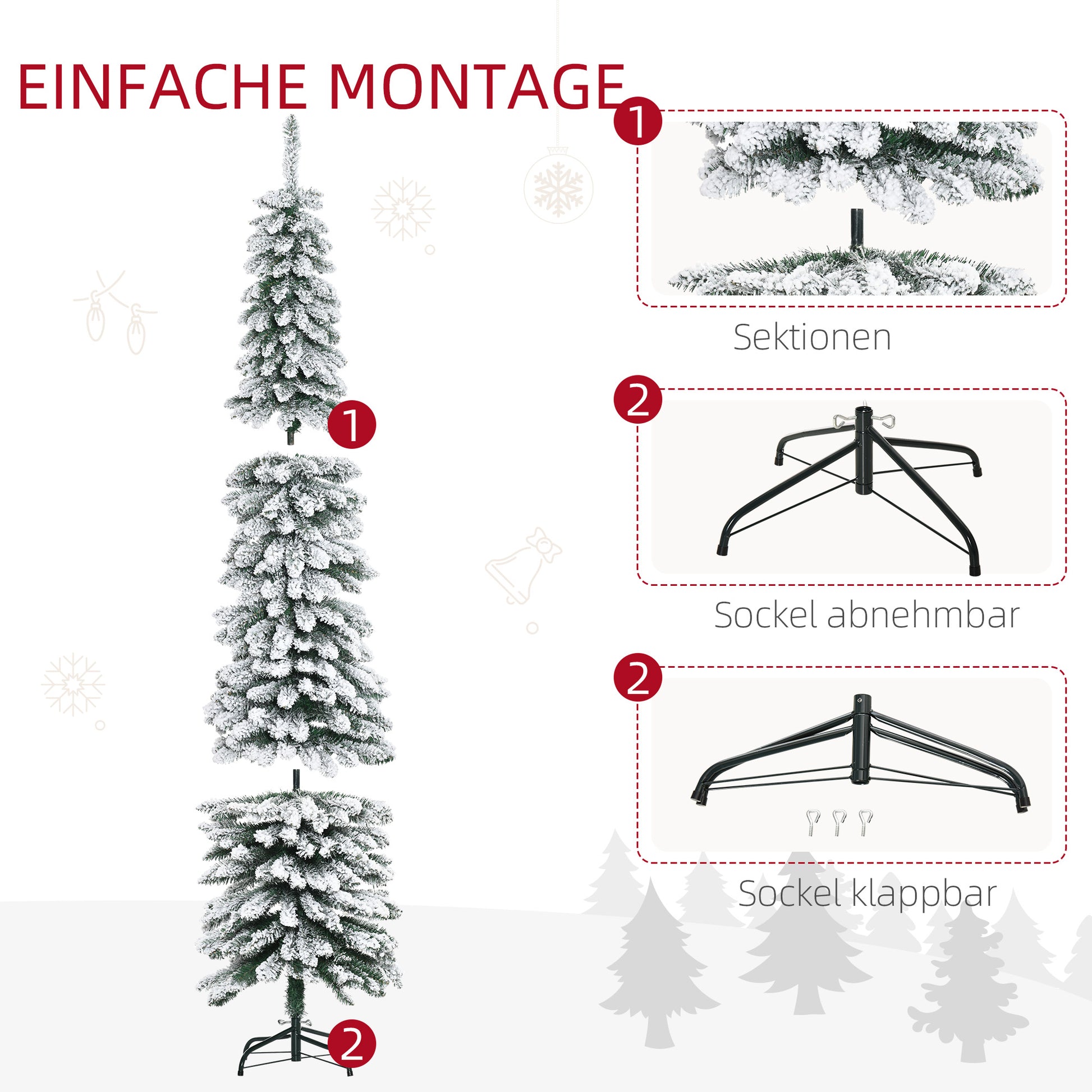 HOMCOM Künstlicher Weihnachtsbaum, schneebedeckt, schmales Design, feuerfest, 210 cm, Grün/Weiß