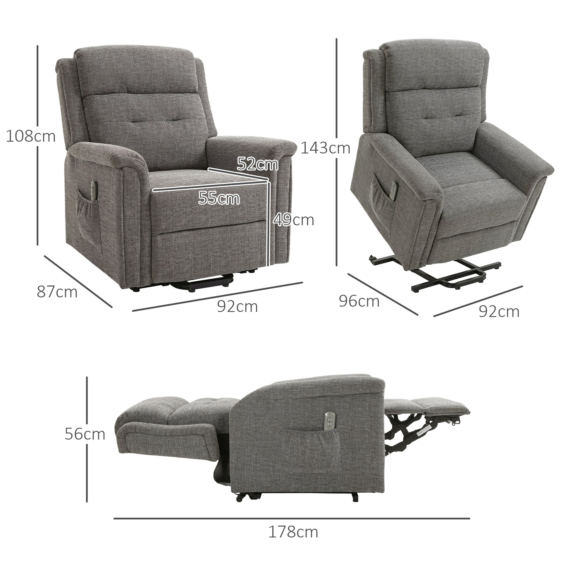 HOMCOM Relaxsessel mit Aufstehhilfe inkl. Fernbedienung Fußstütze Stahl Grau