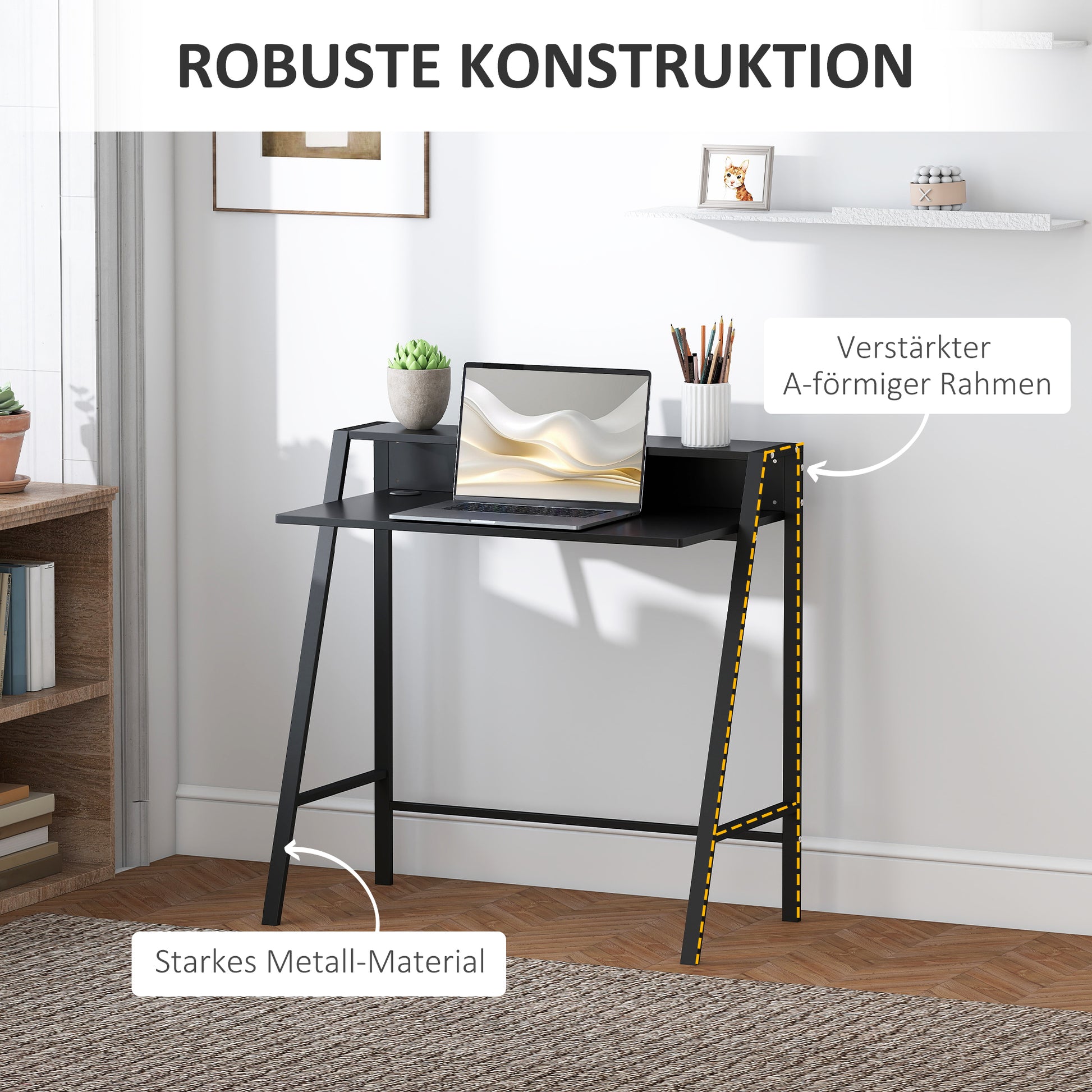 HOMCOM Schreibtisch, Computertisch mit Ablage und Kabel Management, moderner Schreibtisch mit Metallgestell für Arbeitszimmer, Schlafzimmer, Home Office, 84 x 45 x 85 cm, Schwarz