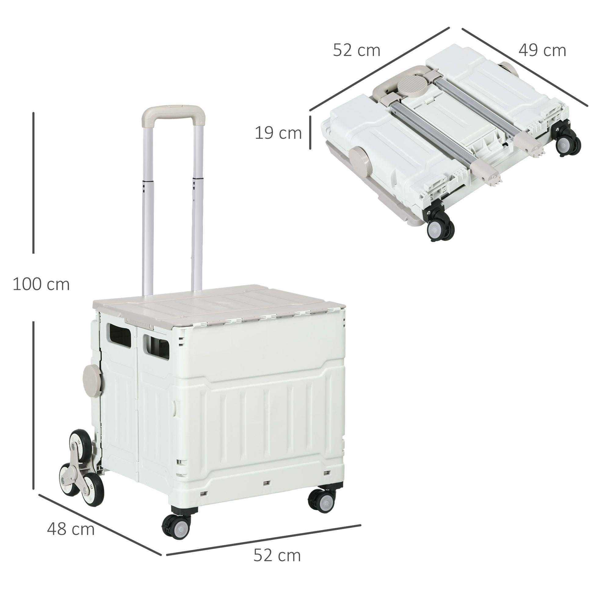 HOMCOM Einkaufstrolley Treppensteiger Mobil Transportbox, klappbar, Teleskopgriff, bis max. 65 Kilo belastbar, Weiß